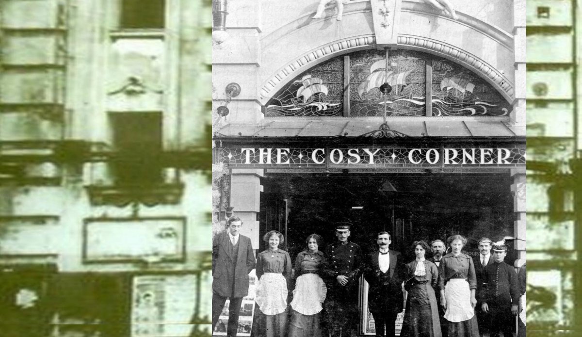 No104 in 1865 the shop was Clement Burton Butcher's shop and in 1876 he was still recorded as being there but in the 1932 Kelly's Directory, James Foster Ayers is running it as a Butchers. From the 1960's the shop had become Hunter's Grill Restaurant and by the time the 2nd picture was taken in 1998 the shop had become Blue Bell fashions. / Pollyanna Balayage Specialist Salon /